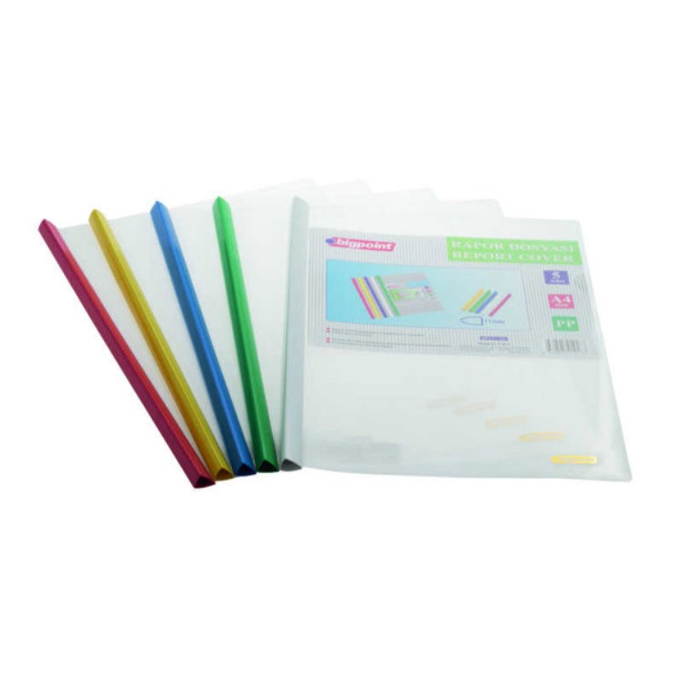 İş yerleri, ofisler ve eğitim kurumları için vazgeçilmez bir ürün olan rapor dosyası, önemli evrak, dosya ve dokümanlarınızı karışmadan ve kaybolmadan kolayca muhafaza edebilmenizi sağlar. Farklı boy ve ebatlarda olan sunum dosyası çoğunlukla A4 boyutlarında olduğundan çantalarda da rahatlıkla taşınabilmektedir. Bigpoint tarafından üretilen proje dosyası da denilen rapor dosyası 11 mm profil genişliğine ve 150 mikron kalınlığında PP malzemeden üretilen plastik kapaklara sahiptir. Paket içerisinde 5 adet rapor dosyası ve renkli profil çubuklar bulunmaktadır. Renkli rapor dosyasının soldan geçmeli üçgen profilleri sayesinde 50 sayfayı tek dosyada saklayabilirsiniz. Ofis, işyerleri ve okullarda, eğitim yaşamınızda kullanmanız için ideal olan proje dosyası, evrak saklama konusunda tam bir koruma sağlar.
